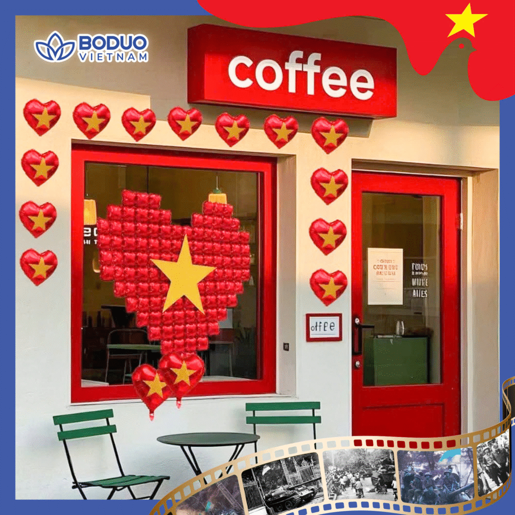 - Tip: Đừng quên thêm các phụ kiện decor nhỏ như lá cờ, hình ngôi sao, nón lá, … để tăng thêm sức hút thị giác cho khách hàng.
