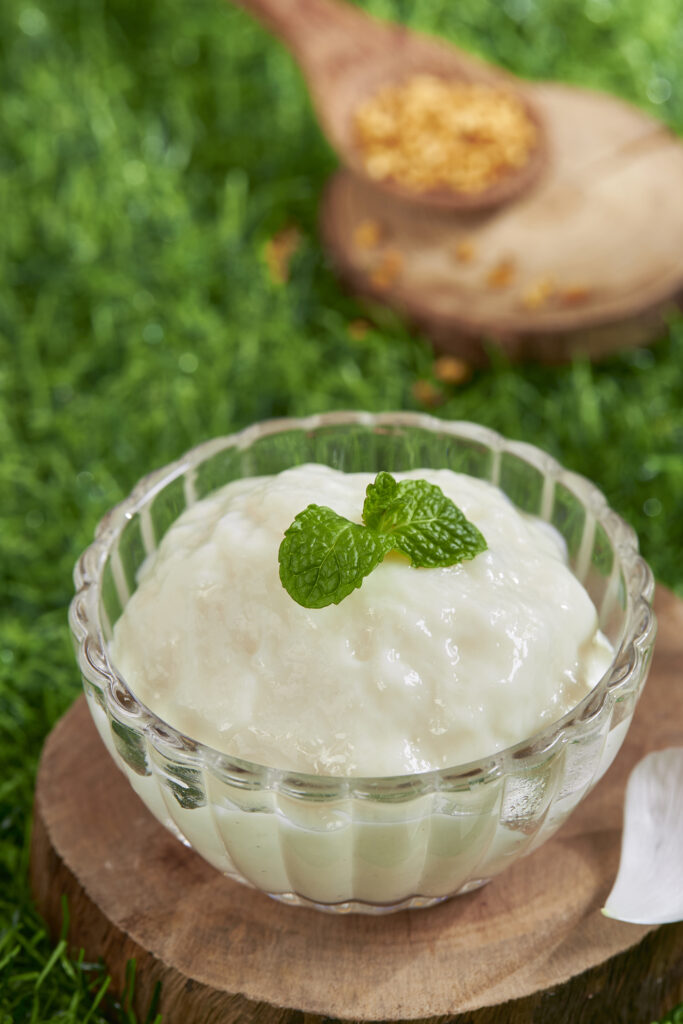• Trang trí lá bạc hà, sữa chua sấy và thưởng thức