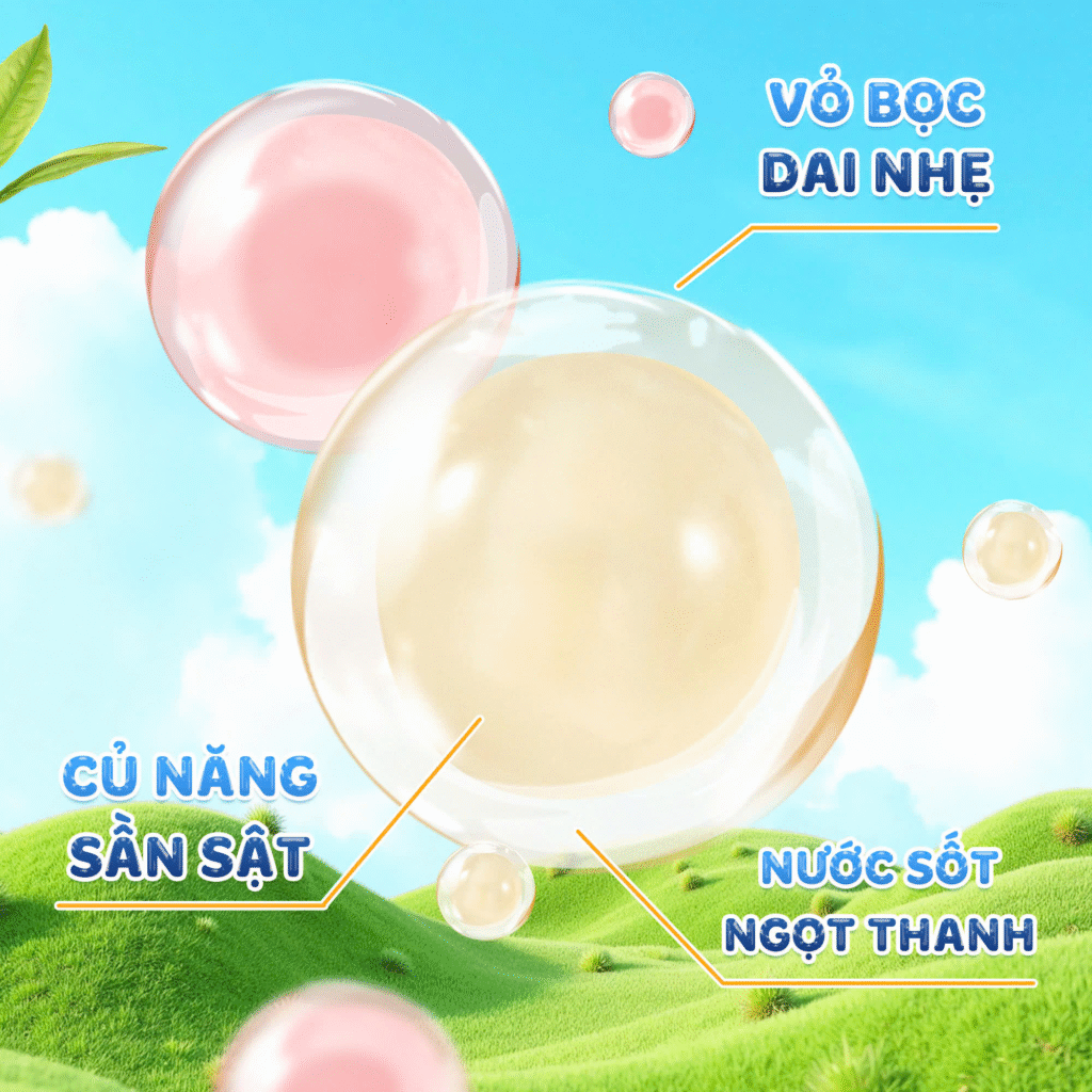 • Độ giòn tự nhiên từ củ năng, tạo cảm giác mới mẻ, khác biệt hoàn toàn so với các loại topping mềm.